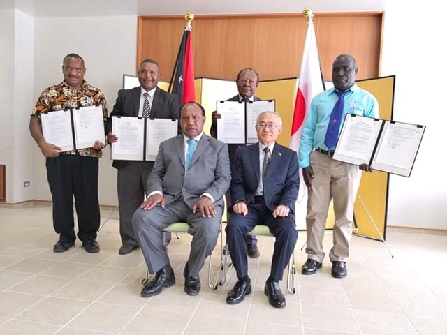 On Tuesday afternoon, 19th February, 2019, Ambassador Satoshi Nakajima signed four (4) grant contracts of Grassroots Human Security Project (GGP) with representatives of the recipients from Warenge Komba Foundation Inc., Kanjalapos Elementary School, Enga Provincial Health Authority and Turiboiru Primary School respectively at the Embassy of Japan in Port Moresby. Among those present to witness the ceremony, was the Hon. Rimbink Pato, Minister for Foreign Affairs and Trade & Member for Wapenamanda Open, who expressed his gratitude for the ongoing support of the Government of Japan.