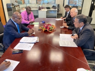 4月4日、髙田太平洋・島サミット(PALM)担当大使は、渡邊大使とともにマル国際貿易投資大臣を表敬しました。髙田大使からマル大臣に対し、ALPS処理水の安全性を説明するとともに、天然資源、経済特区、PNG電化パートナーシップの下での電化事業、空港等インフラ整備事業について意見交換を行い、二国間の関係強化について議論を行いました。