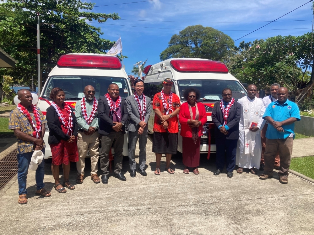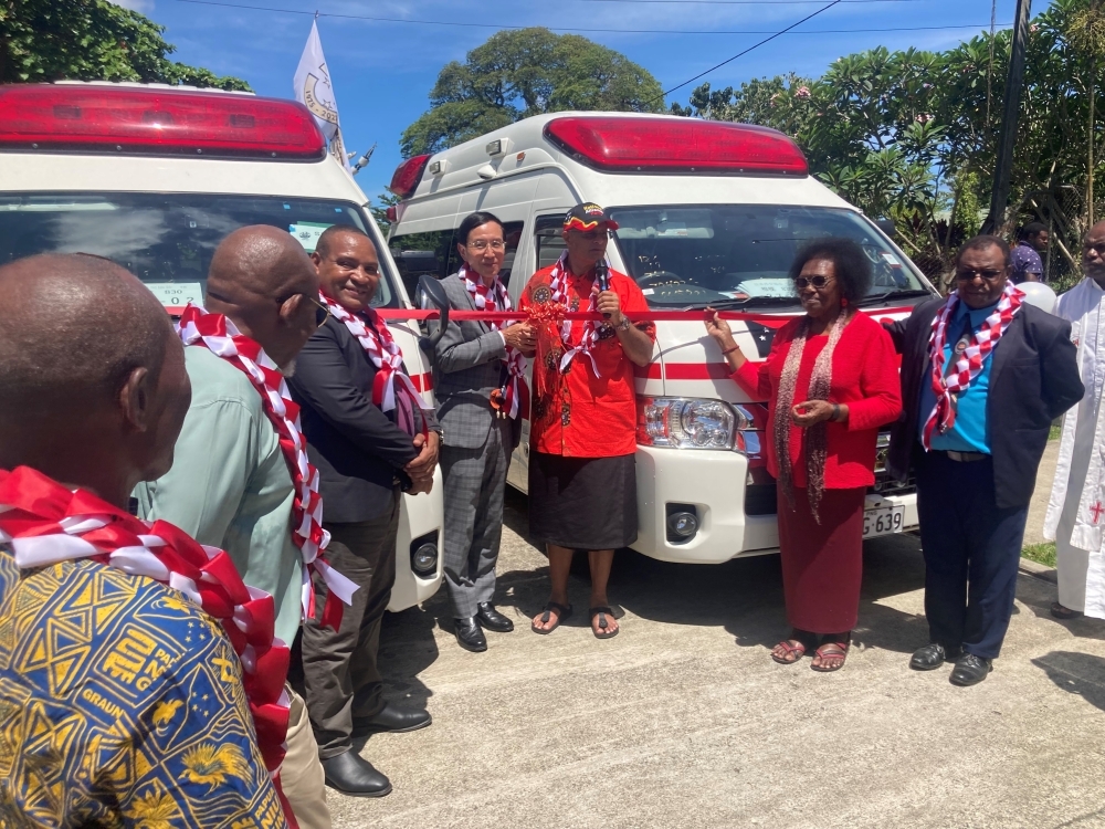 2025年10月15日、望月大使はニューアイルランド州ケビエンにおいて、我が国の草の根無償支援により整備された中古救急車2台及び装備品(支援額約210,000キナ)の引渡式に出席しました。